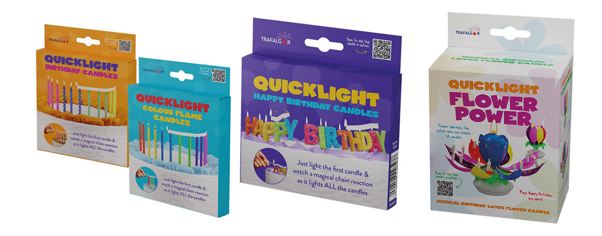 This project is part of an overall ongoing refresh of the Trafalgar Group Trading products, which now include a massive range of sparklers, candles and even a unique Diwali firework pack.